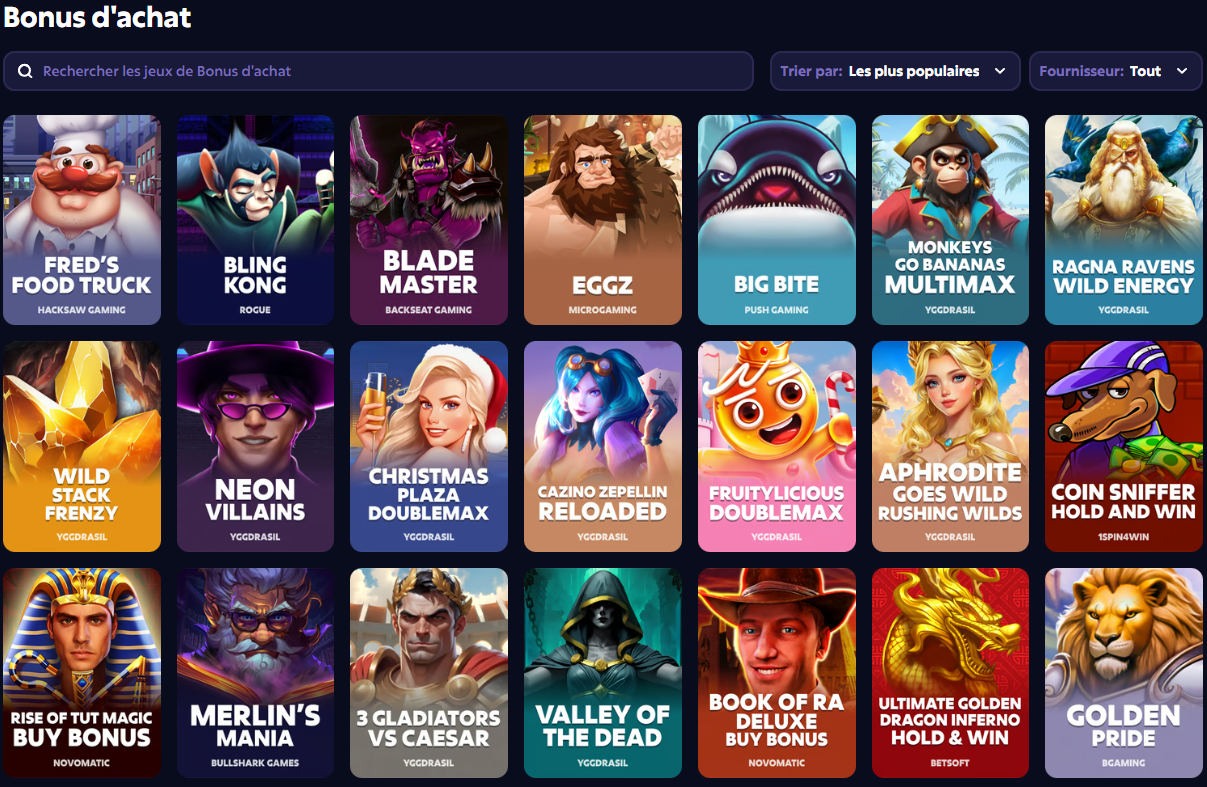 Une large sélection de jeux sur Roo bet casino avec des titres populaires et exclusifs.